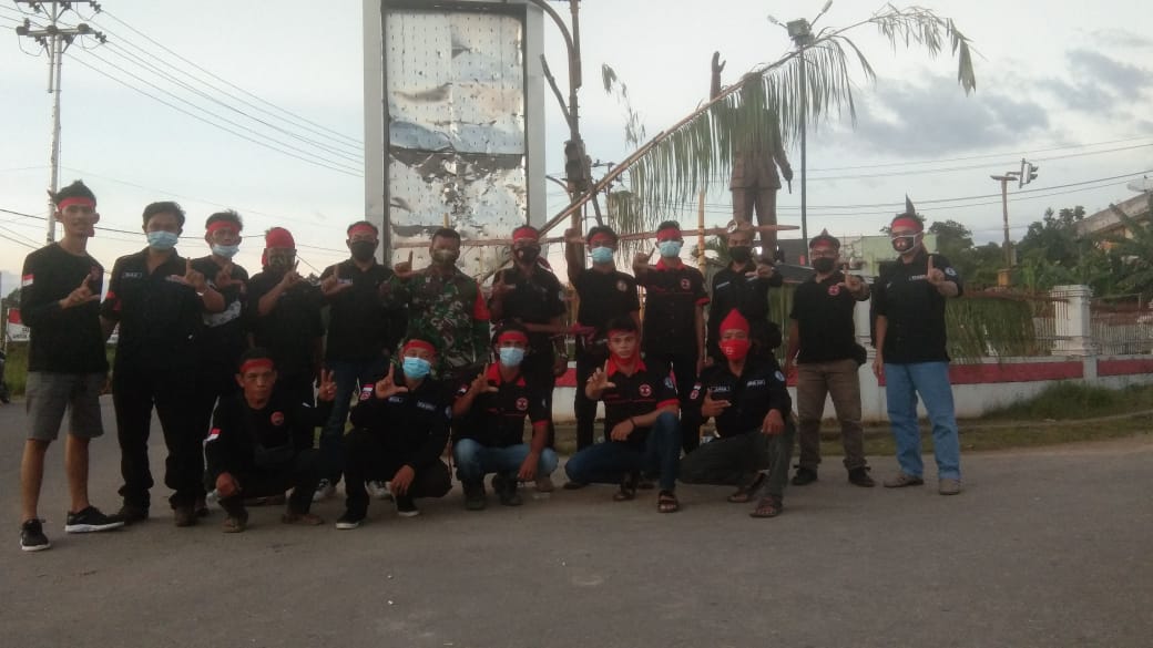 Landak-Babinsa koramil 11/Ngabang Serma Jamari mengikuti ritual penutupan adat Balala’ Nagari di Pal 2,Tugu Sukarno kecamatan Ngabang, Kabupaten Landak,Kamis(28/5/2021)Sore