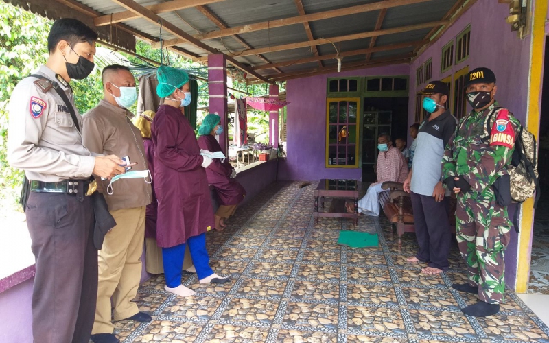 oramil Sungai Pinyuh dalam mengantisifasi penyebaran covid- 19 di wilayah binaan, salah satu Bintara Pembina desa (Babinsa) Serda Agustiari laksanakan pendampingan Tim kesehatan melaksanakan tracing Desa Peniraman, Kecamatan Pinyuh Kabupaten Mempawah. Selasa (01/06/2021).