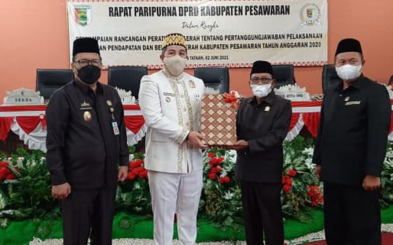 Dewan Perwakilan Rakyat Daerah (DPRD) Kabupaten Pesawaran menggelar Rapat Paripurna Penyampain Rancangan Peraturan Daerah Tentang Pertanggung Jawaban Pelaksanaan Anggaran Pendapatan dan Belanja Daerah Kabupaten Pesawaran Tahun Anggaran 2020.