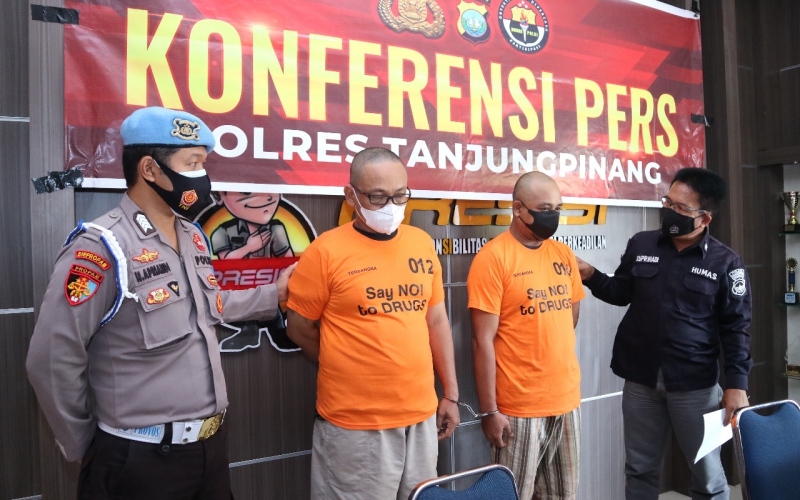 Polres Tanjungpinang berhasil ungkap kasus tindak pidana Narkotika, Rabu (03/06/2021). Konferensi pers terhadap kasus tindak pidana Narkotika dipimpin oleh Kasi Humas Polres Tanjungpinang IPTU SUPRIHADI dan Kanit Idik 1 Satres Narkoba Polres Tanjungpinang IPDA Ivan Wira Hardiyanto,S.H.