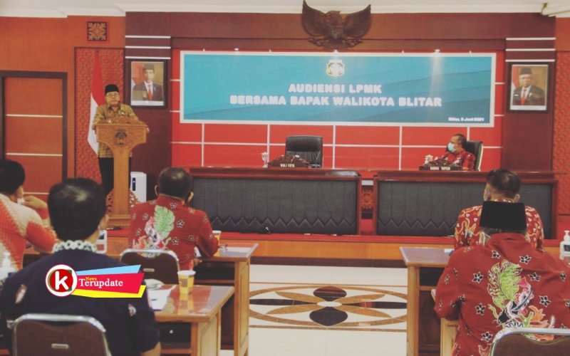 Walikota Blitar Santoso bersama ketua Lembaga Pemeberdayaan Masyarakat Kelurahan (LPMK) se- kota Blitar berdiskusi membahas program kerja pemerintahannya yang akan direalisasikan, melalui forum audiensi, Kamis (3/6/2021) di ruang Sasana Praja kantor Walikota Blitar.