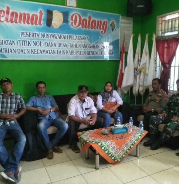 Acara yang dilaksanakan di kantor desa Durian Daun kec. Lais kab. Bengkulu Utara ini dihadiri oleh Kapolsek Lais Iptu Sukamto beserta Bhabinkamtibmas  Aipda B. Sirait,S.H., Camat Lais, Hikman, S.H., Danramil Lais Kapten Inf. Cipto Semedi, Kepala desa Durian Daun Lilis S., beserta perangkat pemerintahan desa Durian Daun,  Ketua BPD Durian Daun beserta anggota, Pendamping Lokal Desa dan KPM BLT DD.