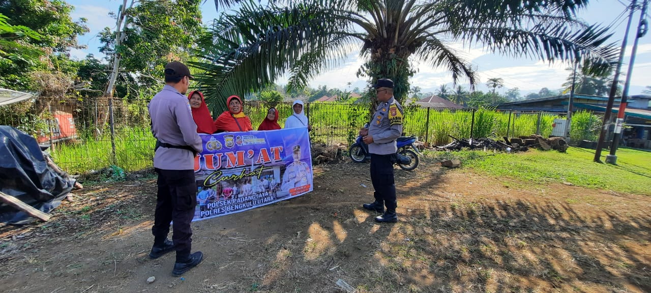 Bengkulu Utara – Kapolsek Padang Jaya Polres Bengkulu Utara Iptu Ratno, S.H., melalui Bhabinkamtibmas Polsek Padang Jaya Aipda Sukron bersama Aipda Sumaryanto mendengarkan aspirasi masyarakat melalui program ‘Jumat Curhat’ di Desa Padang Jaya Kecamatan Padang Jaya Kabupaten Bengkulu Utara, Jumat (02/06/2023).