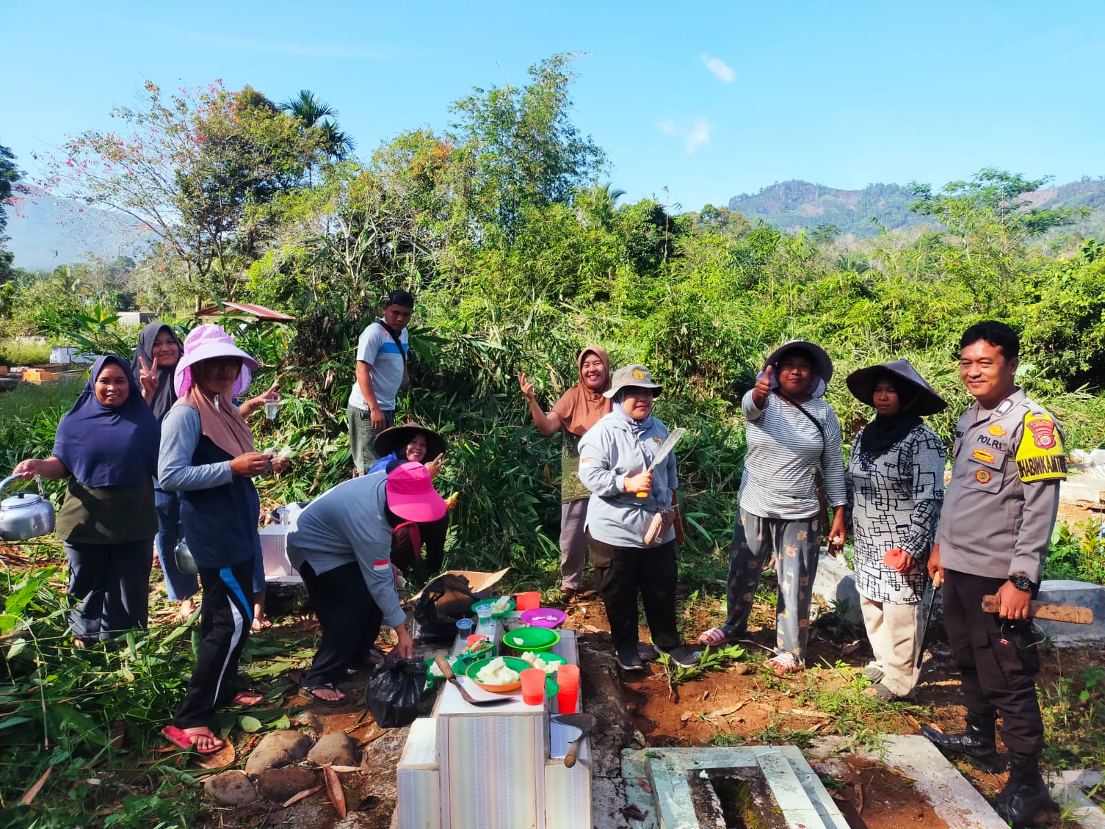 Bhabinkamtibmas Gotong Royong Bersihkan Makam