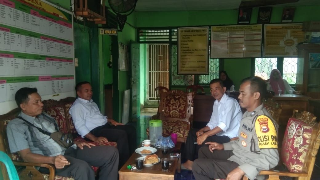 Polisi RW Aiptu D. Hariyanto yang bertugas di Dusun I Desa Talang Rasau Kecamatan Lais Kabupaten Bengkulu Utara, bertemu dengan pengurus RW I desa Talang Rasau di kantor desa Sukarami.