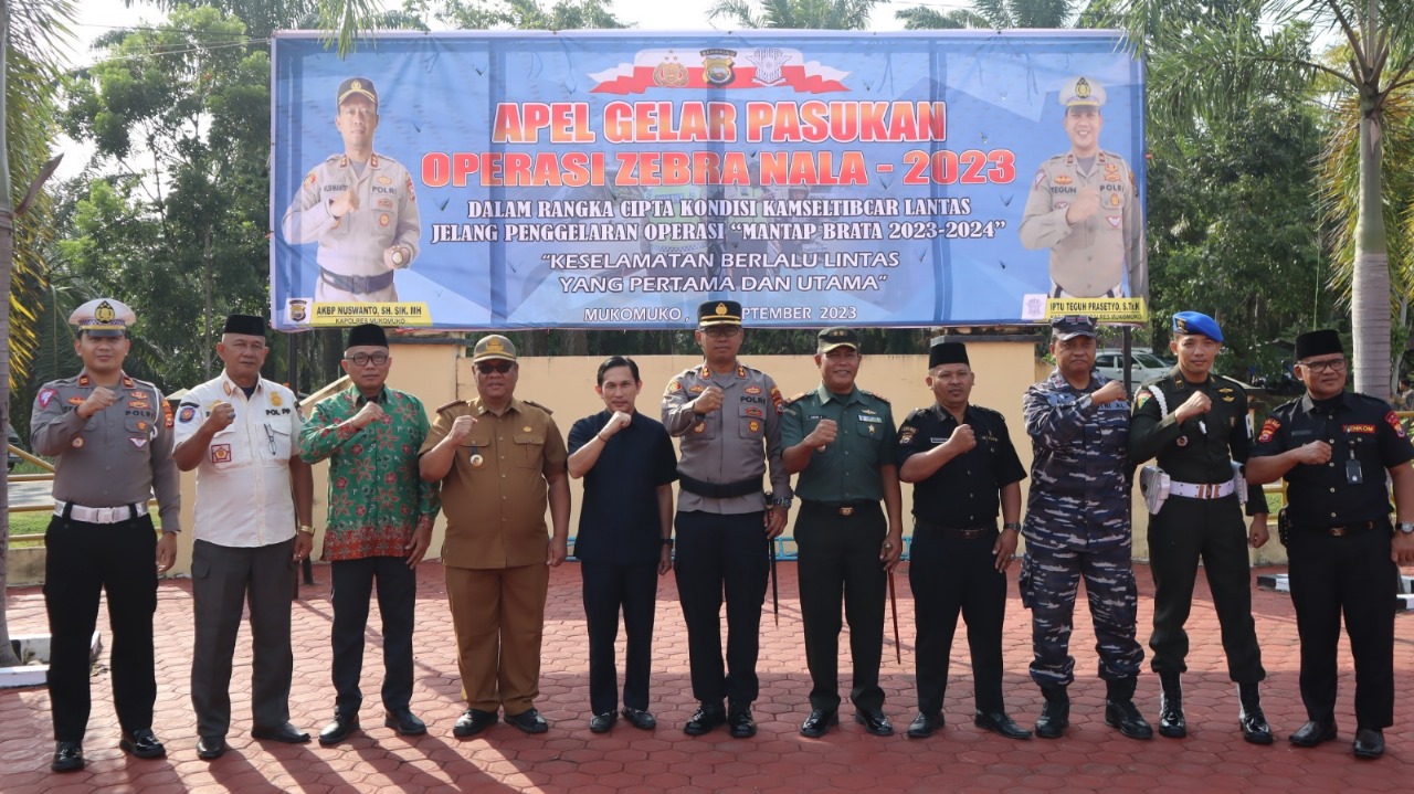 Mukomuko – Polres Mukomuko Polda Bengkulu, menggelar Upacara Apel Gelar Pasukan ‘Operasi Zebra Nala’ Tahun 2023, Senin (4/8/2023).