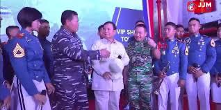 Tampak pula para prajurit yang ada di sana berjoget bersama. Bahkan terlihat Menhan Prabowo Subianto berdiri di samping KSAL Yudo dan KSAD Dudung langsung berjoget sembari menebar senyum.