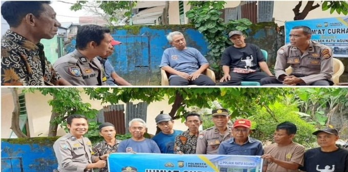 Bengkulu – Kegiatan Jumat Curhat Polresta Bengkulu Polda Bengkulu kembali dilaksanakan. Kali ini, Jumat Curhat di rumah Ketua RT 005 RW 02 Kelurahan Kebun Beler Kecamatan Ratu Agung Kota Bengkulu, Jumat (03/11/2023).