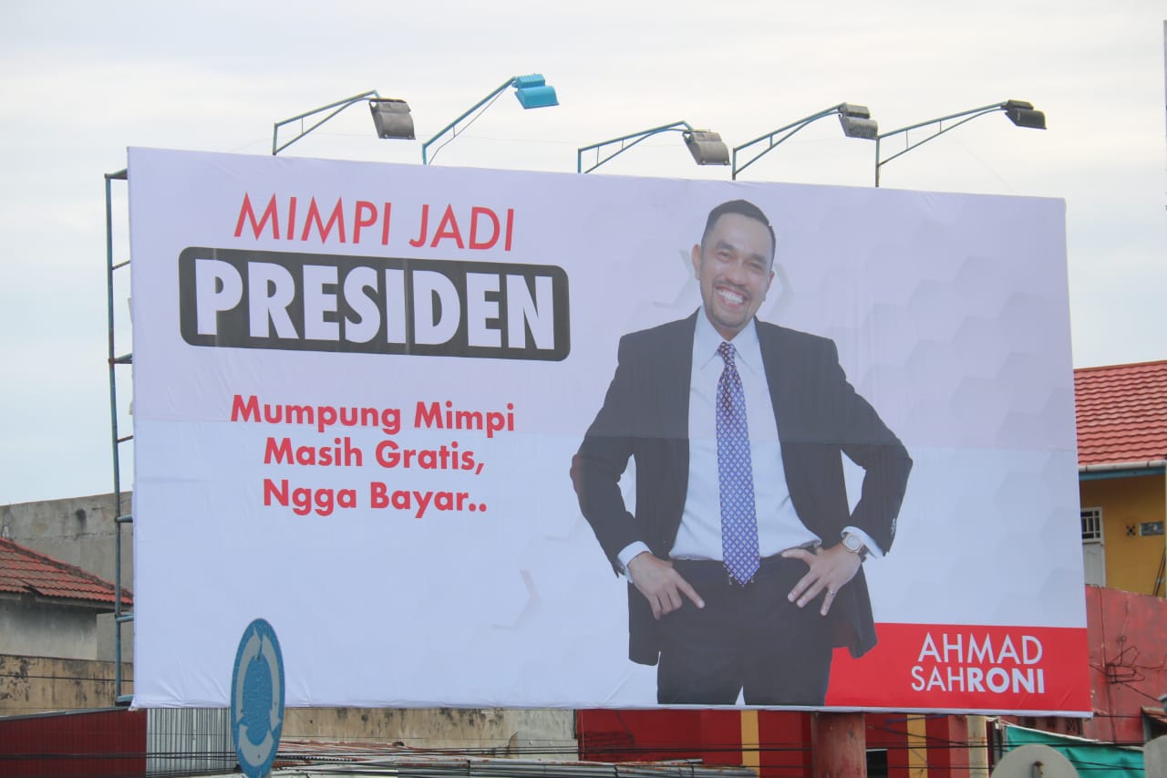 Apakah dia benar-benar ingin jadi Presiden seperti Presiden saat ini Jokowi yang sedang memimpin Indonesia?Banyak yang bertanya demikian, akhirnya Ahmad Sahroni buka suara soal billboard dirinya di Bengkulu  yang bertuliskan “Ahmad Sahroni, mimpi jadi presiden: Mumpung mimpi masih gratis, ngga bayar.” Kata  Ahmad Sahroni, Senin (04/01/21) Kemaren.