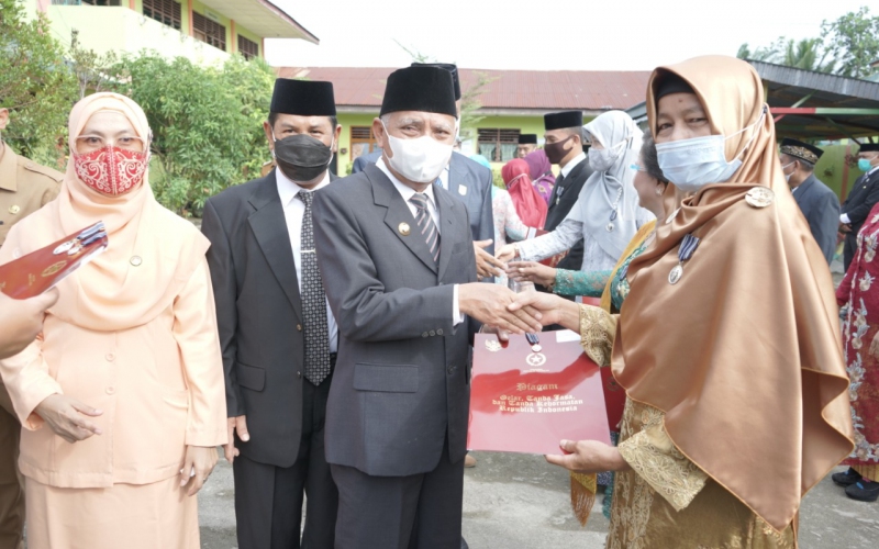 Bupati Asahan H. Surya, BSc pimpin upacara Hari Amal Bakti Kementerian Agama ke-75 yang bertempat di Sekolah MTs Negeri 1 Asahan Desa Rawang Lama Kecamatan Rawang Panca Arga, Selasa (5/01/2021).