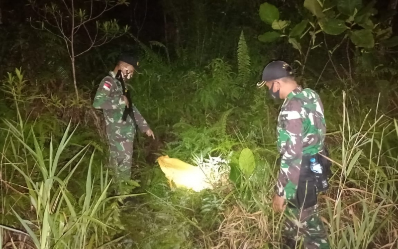 Selanjutnya anggota Pos Kotis melakukan penyisiran disekitar jalan tikus arah perbatasan dan menemukan sebuah karung yang ditutupi dedaunan kemudian Letda erick memerintahkan untuk membuka karung tersebut setelah karung tersebut dibuka ternyata kantong tersebut berisikan 48 Botol Miras Merk Benson.