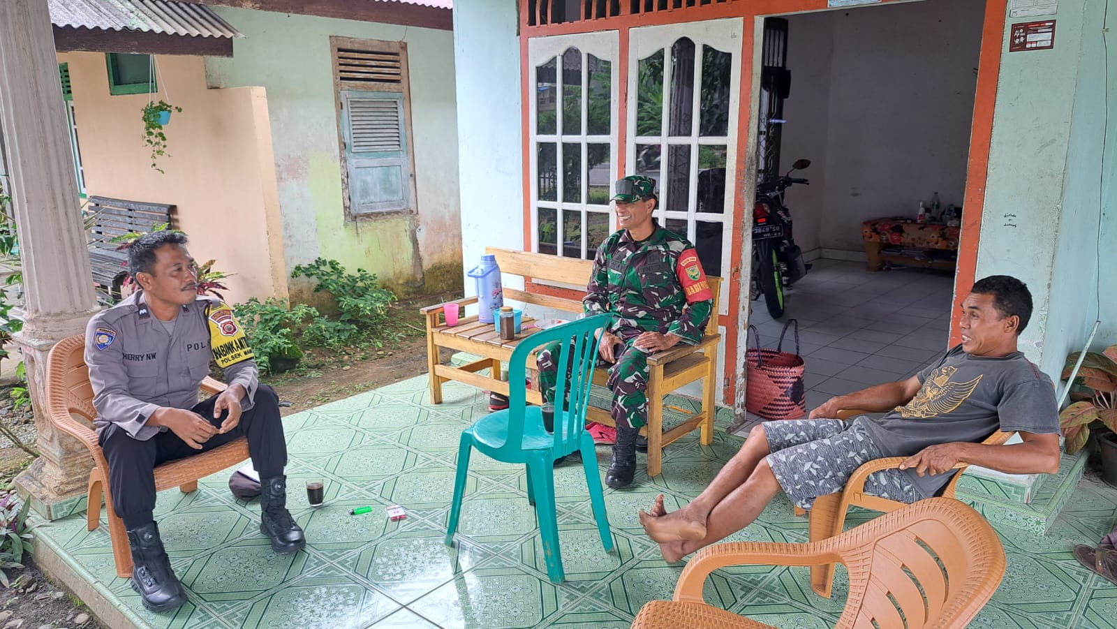 Jalin Sinergitas, Bhabinkamtibmas dan Babinsa Sambang Bersama Kerumah Warga