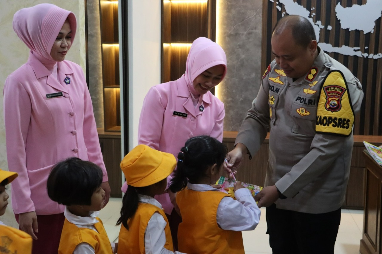 Kepahiang –Puluhan anak TK Kemala Bhayangkari 30 Kepahiang, mengikuti program Polisi Sahabat Anak di Mapolres Kepahiang Polda Bengkulu.