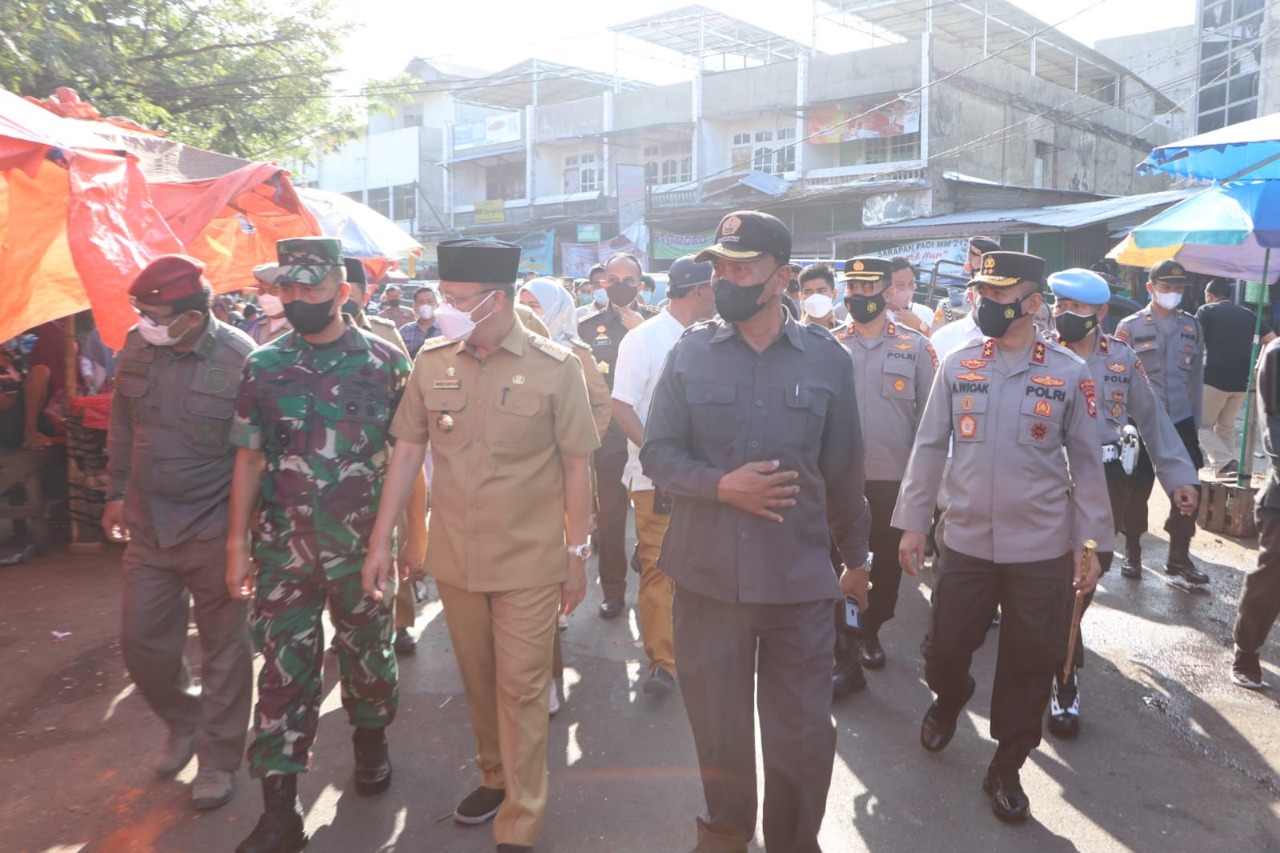 Kapolda dan Gubenur Bengkulu Tinjau Pasokan Sembako di Pasar Panorama