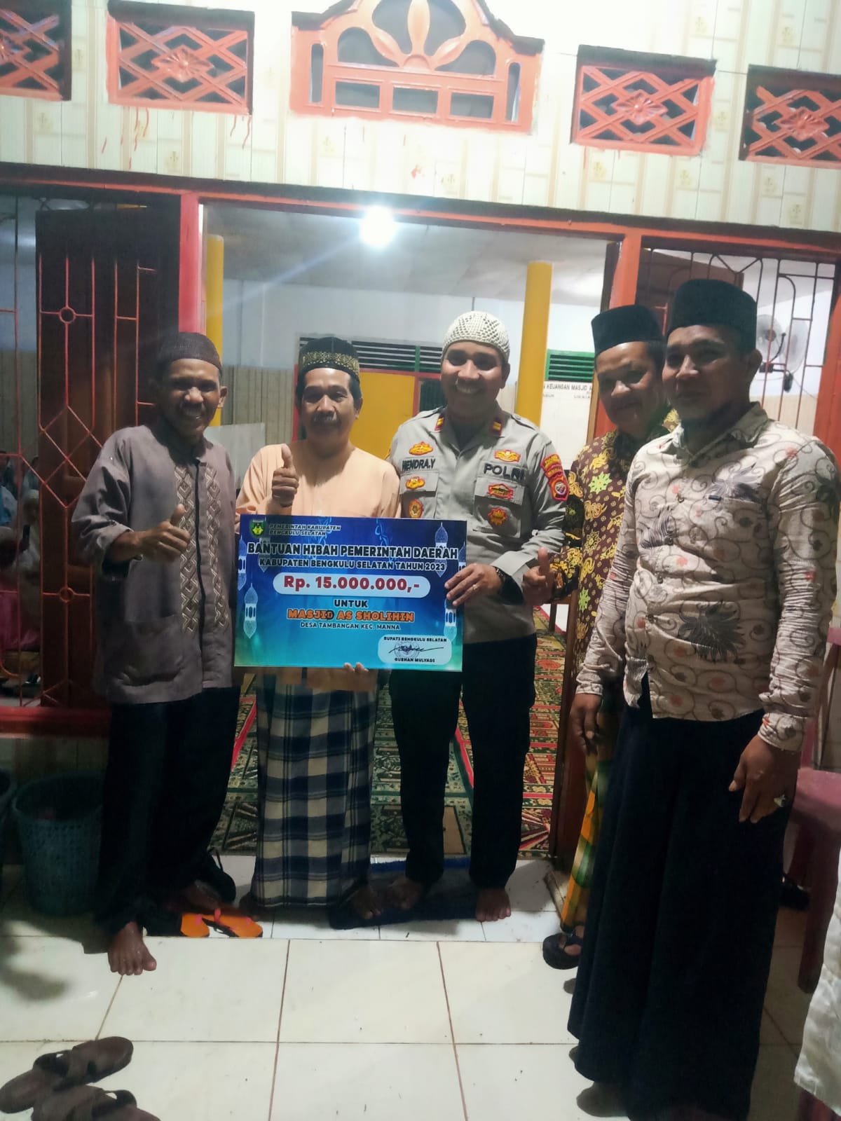 Dalam kesempatan itu Kapolsek bersama Kepala Bappeda Litbang juga memberikan bantuan sosiala. Adapun, bantuan yang disalurkan berupa (Mie,telur dan beras) untuk kaum dhuafa dan pengurus masjid.