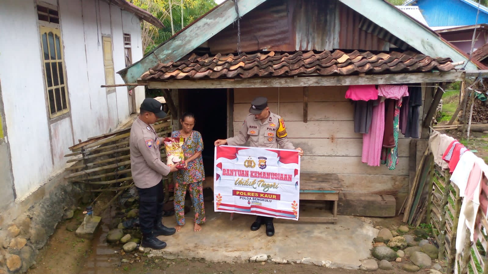 Kaur – Polsek Kaur Tengah Polres Kaur Polda Bengkulu menyalurkan bantuan sosial kepada warga kurang mampu dan atau yang membutuhkan, Rabu (5/4/2023).