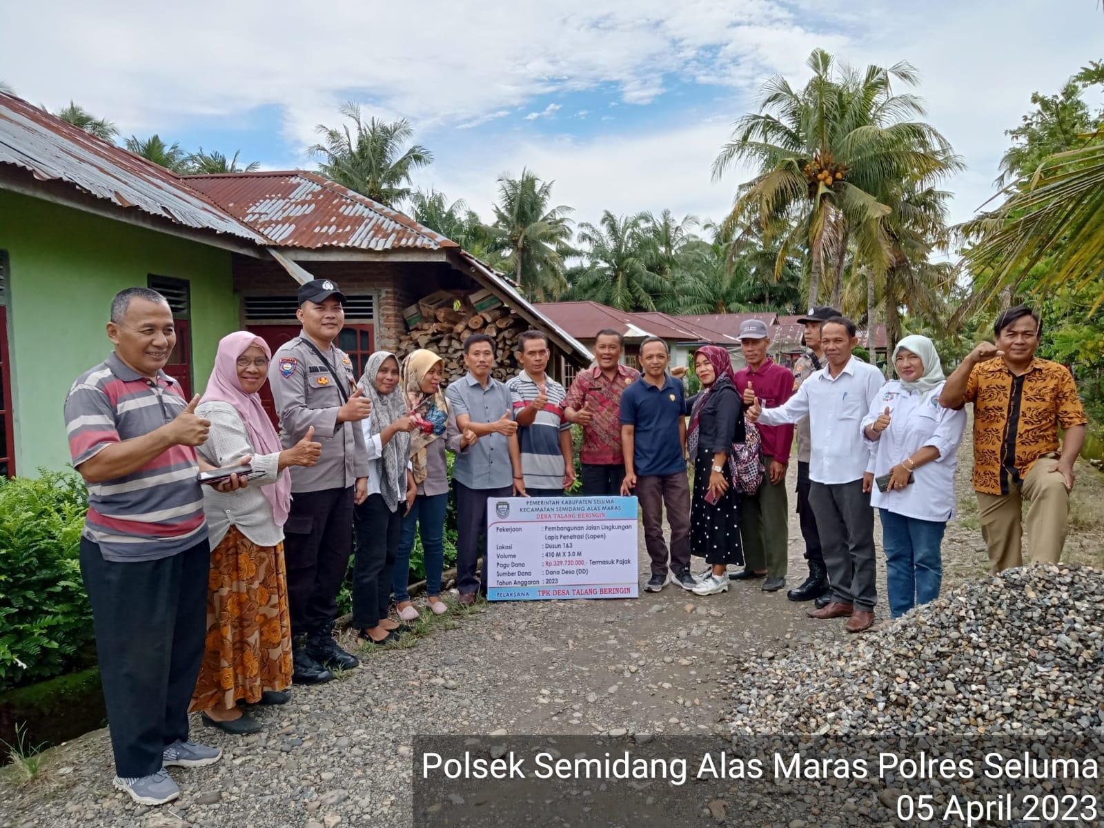 Diawali Peletakan batu pertama pembangunan jalan lapis penetrasi (Lapen) dengan volume 410 M x ini menggunakan Anggaran DD sebesar Rp. 329.720.000,-. Selanjutnya kegiatan dilanjutkan dengan pembagian BLT DD tahap pertama dari bulan Januari-Maret.