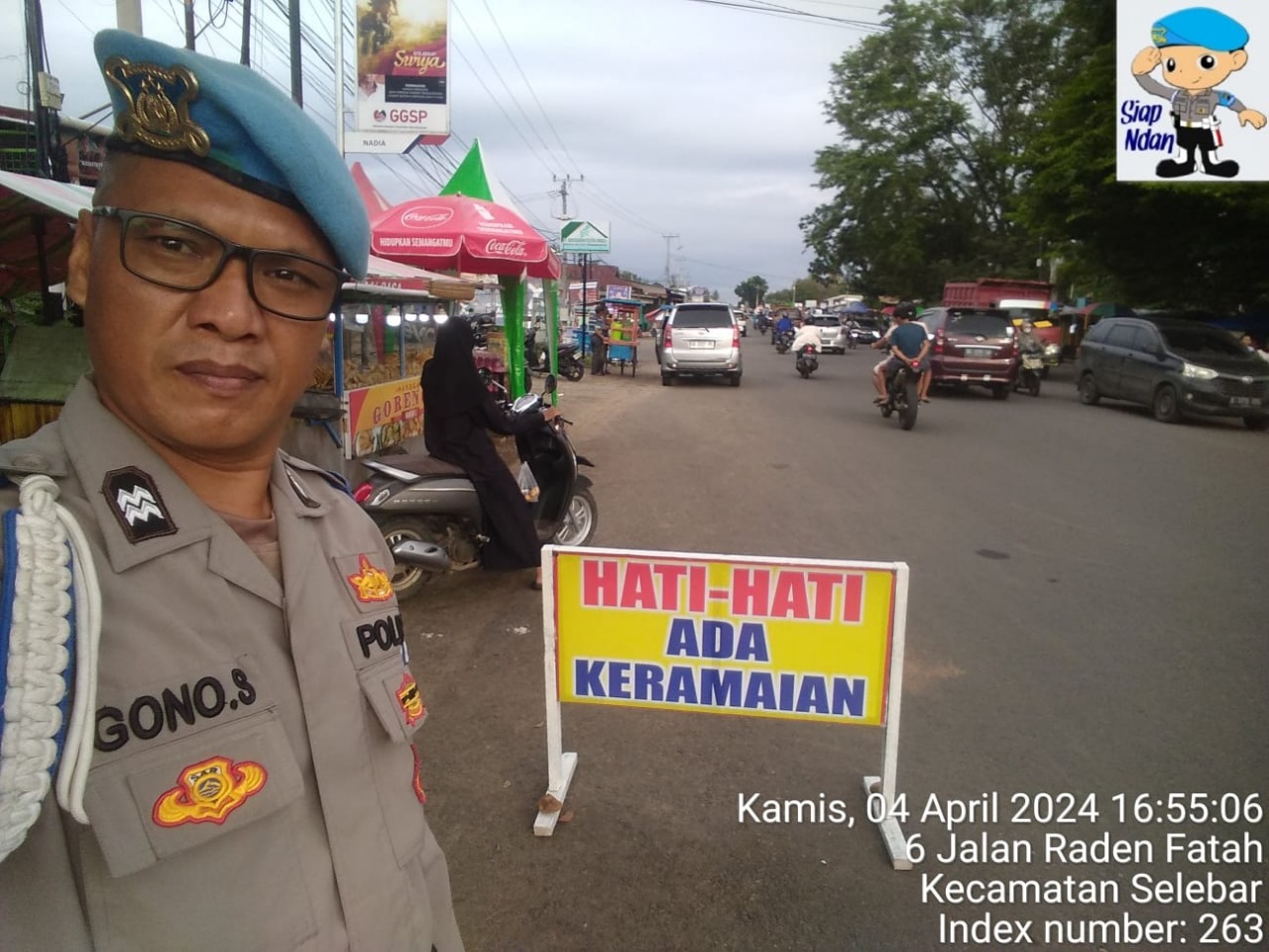 Bengkulu – Guna hadir di tengah – tengah kegiatan masyarakat, personel Polsek Selebar Polresta Bengkulu Polda Bengkulu melaksanakan Pengamanan dan Monitoring Pasar Kaget di Wilayah Hukum Polsek Selebar, Kamis (04/04/2024) sore.