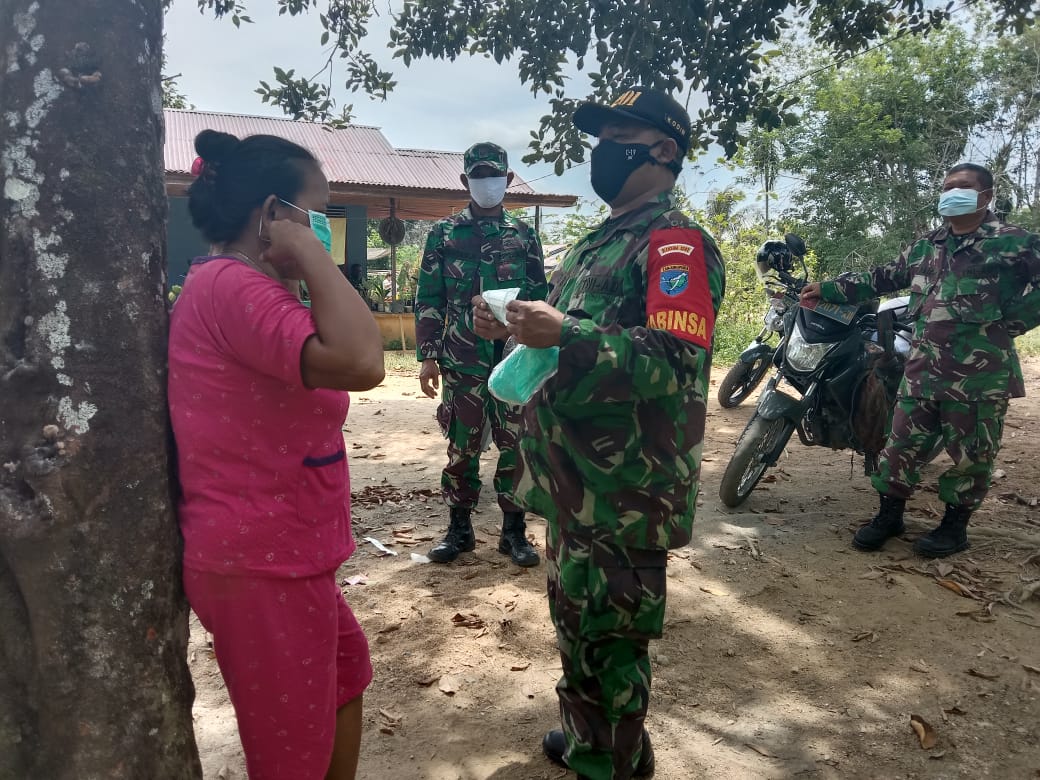 Mempawah – Untuk menjaga warga binaannya agar tidak mudah tertular Covid-19, Koramil 05/Toho, Kodim 1201/Mph bersama Muspika setempat membagikan masker kepada masyarakat Desa Sepang, Kecamatan Toho, Kabupaten Mempawah, Kamis (3/6/2021).
