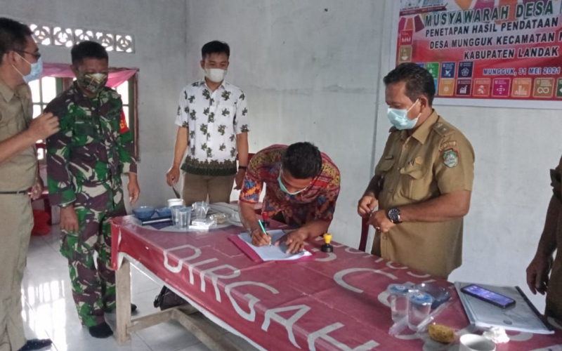 Babinsa Koramil 11/Ngabang, Serda Iman mengikuti Musyawarah Desa tentang Penetapan Hasil Data SDGs di Gedung Madi/TPA Desa Mungguk, Kecamatan Ngabang, Kabupaten Landak, Selasa (1/6/2021).