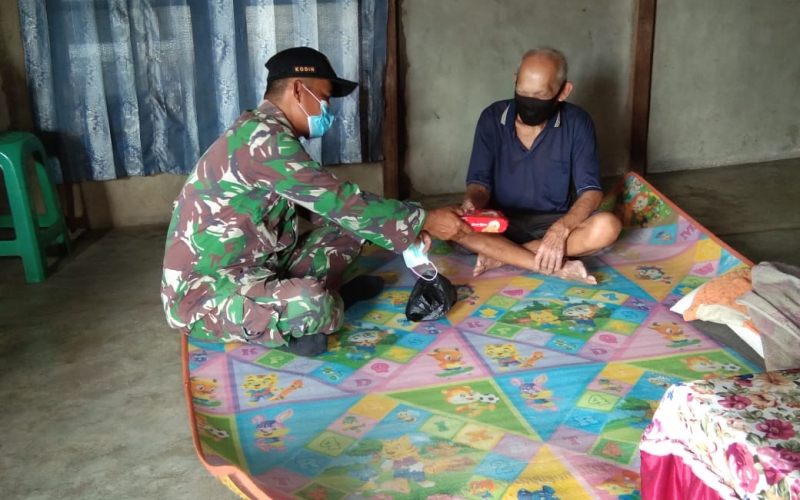 Komandan Koramil 1201-06/Menjalin Peltu Suparlan bersama Babinsa melaksanakan anjangsana dan memberikan bantuan kepada seorang warga lanjut usia (Lansia) di