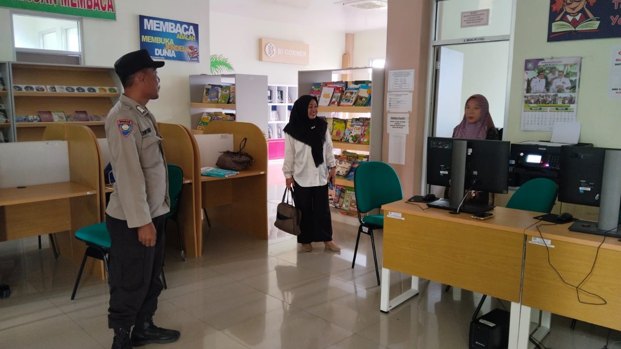 Anggota Piket Yanmas melaksanakan Patroli ke Kantor Perpustakaan Kab. Kaur di Desa Sinar Pagi Kecamatan Kaur Selatan, petugas melaksanakan fungsi preventif dan meningkatkan kehadiran Polisi Untuk memberikan rasa aman.