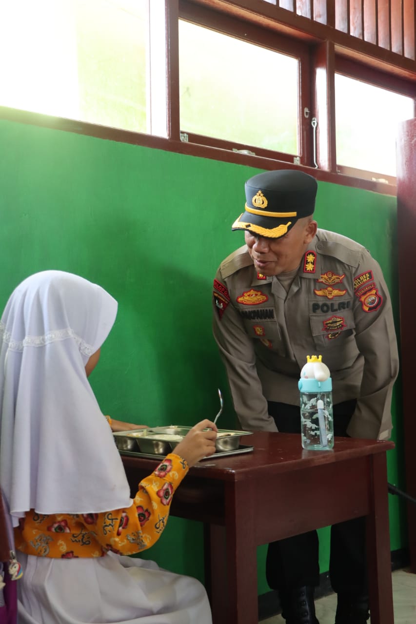 Seluma – Pada Rabu tanggal 4 Juni 2025 Kapolres Seluma AKBP Bonar Ricardo P. Pakpahan, S.I.K, M.I.K mendamping Bupati Seluma Teddy Rahman, SE.MM dalam giat melaunching Program Makan Bergizi Gratis (MBG) di SDN 65 Seluma yang terletak di Desa Kayu Arang, Kecamatan Sukaraja Kab. Seluma.