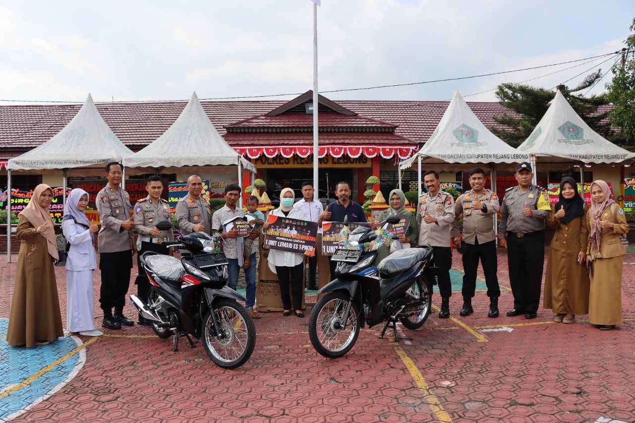 Bengkulu, Siberindo.co – Gebyar vaksinasi berhadiah dalam rangka Hari Bhayangkara ke-76 Polres Rejang Lebong telah diundi. Mereka yang beruntung, mendapatkan 2 unit sepeda motor, kulkas, sepeda, kompor gas, TV dan mesin cuci.