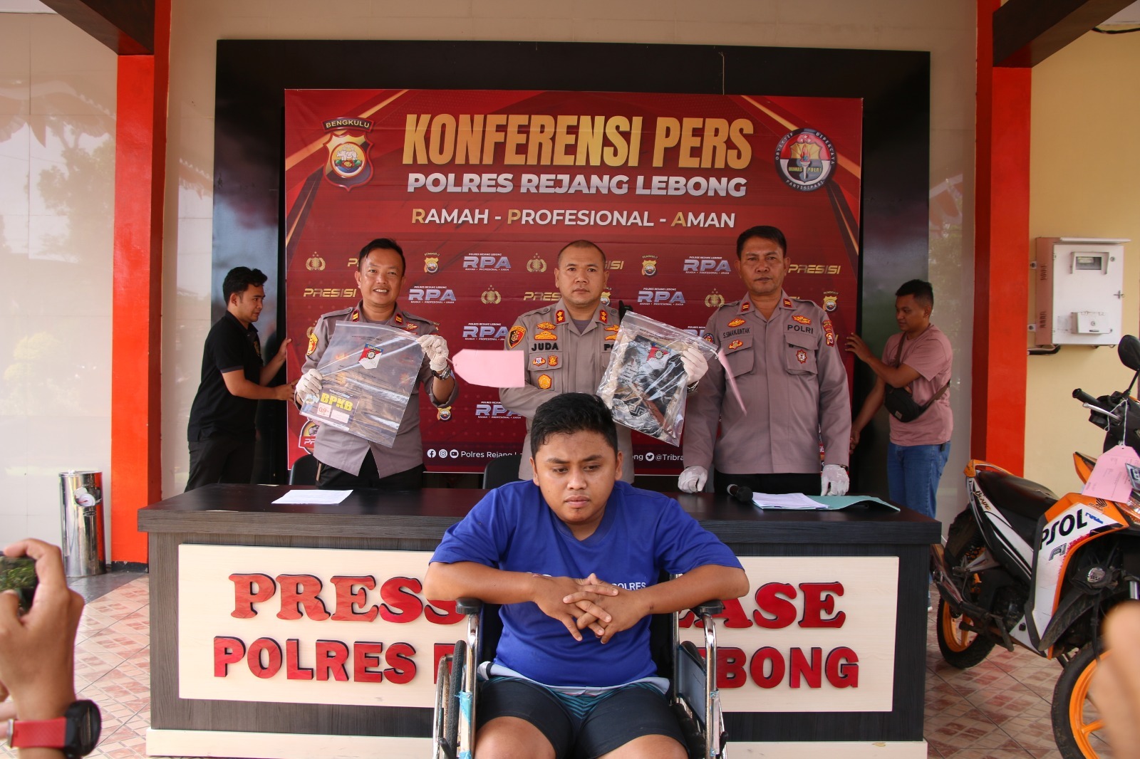 Aksi begal tersebut dilakukan oleh Da bersama dua rekannya yang saat ini sudah masuk DPO, pada Kamis (15/6/2023) sore, di Jalan Umum Desa Kampung Jeruk Kecamatan Binduriang Kabupaten Rejang Lebong.