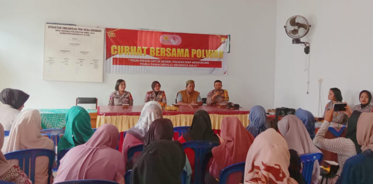 Bengkulu Utara – Sebagai wujud agar lebih dekat dengan masyarakat, Polisi Wanita (Polwan) Polres Bengkulu Utara melaksanakan kegiatan Curhat Bersama Polwan kegiatan ini merupakan rangkaian dalam rangka HUT Polwan, kegiatan ini dilaksanakan di Desa Sidodadi Kecamatan Arma Jaya Kabupaten Bengkulu Utara, Sabtu (05/08/2023).