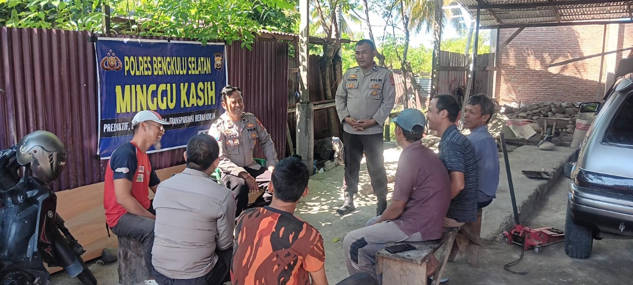 Bengkulu Selatan – Sat Binmas Polres Bengkulu Selatan Polda Bengkulu, punya cara Khusus mendatakan keluhan warga terhadap situasi Kamtibmas pada saat ini, dengan kegiatan Minggu Kasih di Desa Padang Niur Kecamatan Kota Manna Kabupaten Bengkulu Selatan, Minggu (04/08/24).