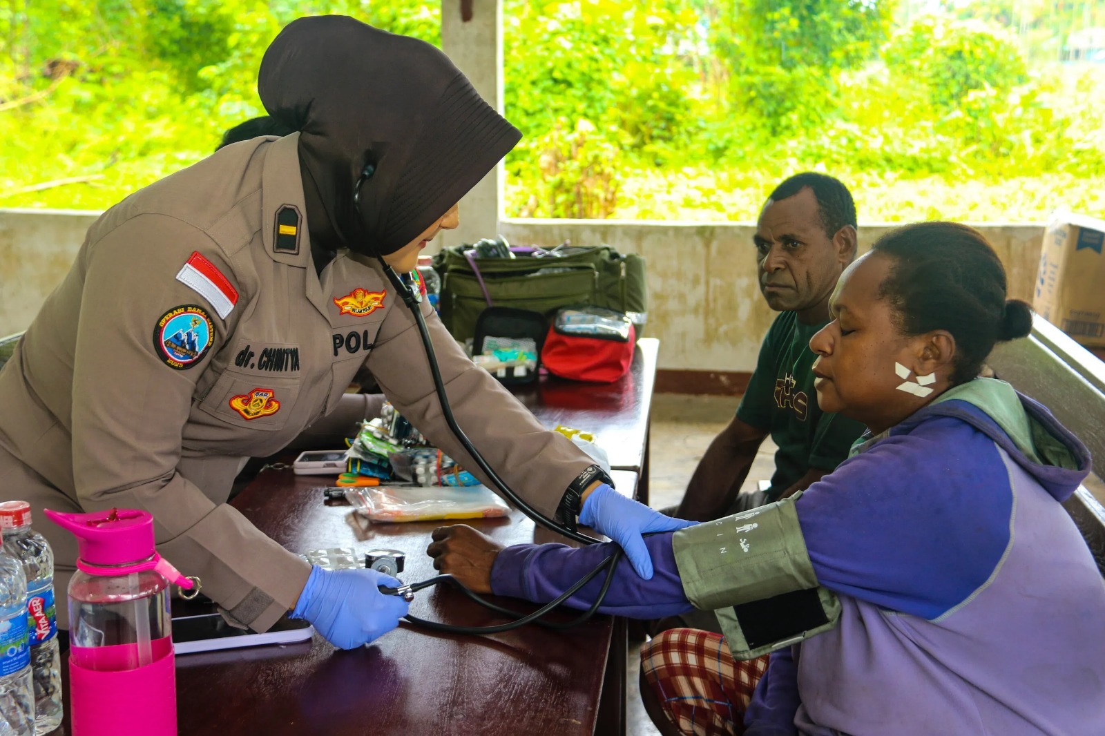 Di tengah kegiatan tersebut, IPDA dr. Chintya dan BRIPKA Ita terus melayani tanpa lelah. Senyum mereka menjadi pengingat bahwa pengabdian tidak selalu harus di garis depan medan konflik kadang, pengabdian paling berarti justru hadir lewat tangan yang menyentuh dan hati yang mendengar.