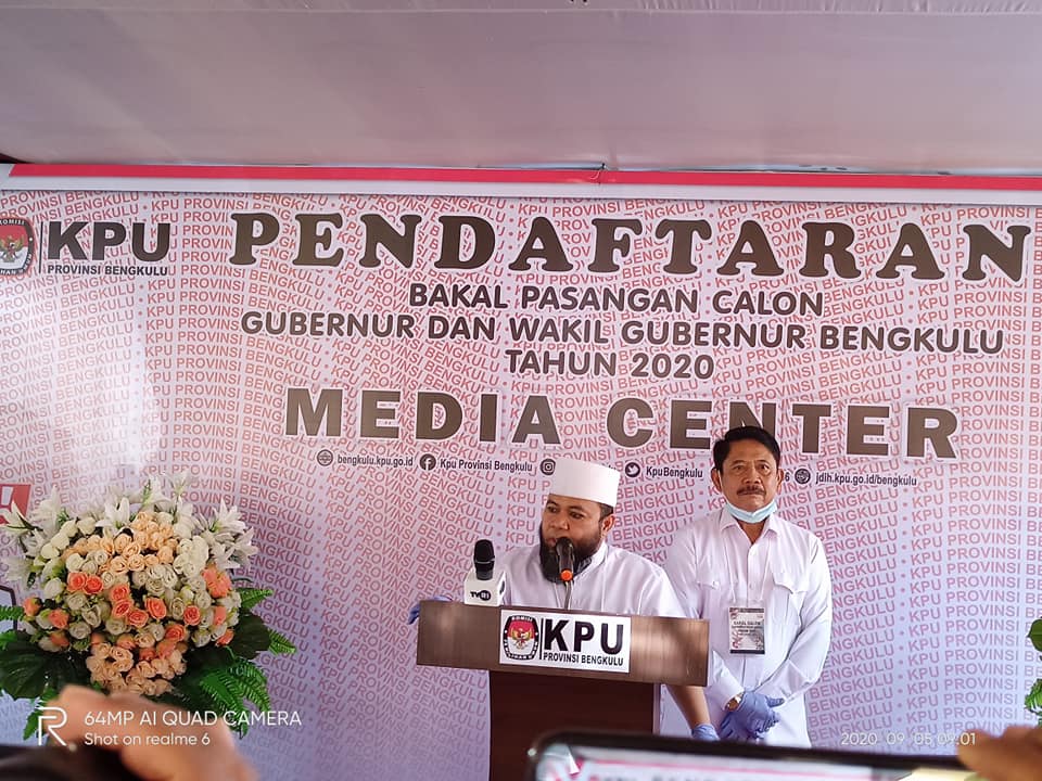 Bengkulu, Siberindo.co – Bakal calon pasangan Gubernur dan Wakil Gubernur Bengkulu, Helmi Hasan dan Muslihan DS, pagi ini Sabtu (5/9/2020) mendaftarkan diri ke Komisi Pemilihan Umum (KPU) Provinsi Bengkulu.