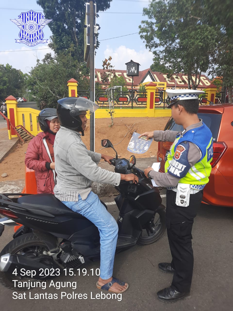 Lebong – Satgas Preemtif Operasi Zebra Nala 2023 Satlantas Polres Lebong Polda Bengkulu, melaksanakan kegiatan pembagian brosur dan stiker Ops Zebra Nala 2023. Kegiatan tersebut dilaksanakan di depan Mako Polres Lebong, Senin (4/9/2023).