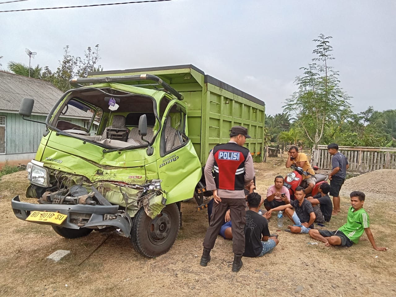 Kendaraan yang mengalami laka lantas yaitu truk Dutro Warna Hijau BD 8016 SU menabrak kendaraan truk warna merah bermuatan Sawit.