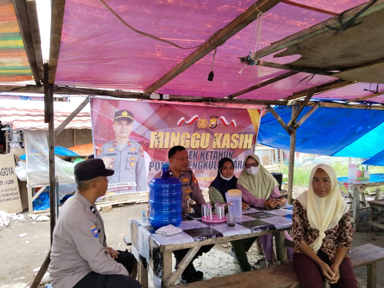 Bengkulu Utara – Sebagai upaya untuk mendengar langsung keluhan dari masyarakat, Polsek Ketahun Polres Bengkulu Utara Polda Bengkulu, melalui Aiptu Juni Amir Purba menggelar kegiatan Minggu Kasih bertempat di Pasar D1 Desa Giri Kencana Kecamatan Ketahun, Minggu (05/11/2023) pagi.
