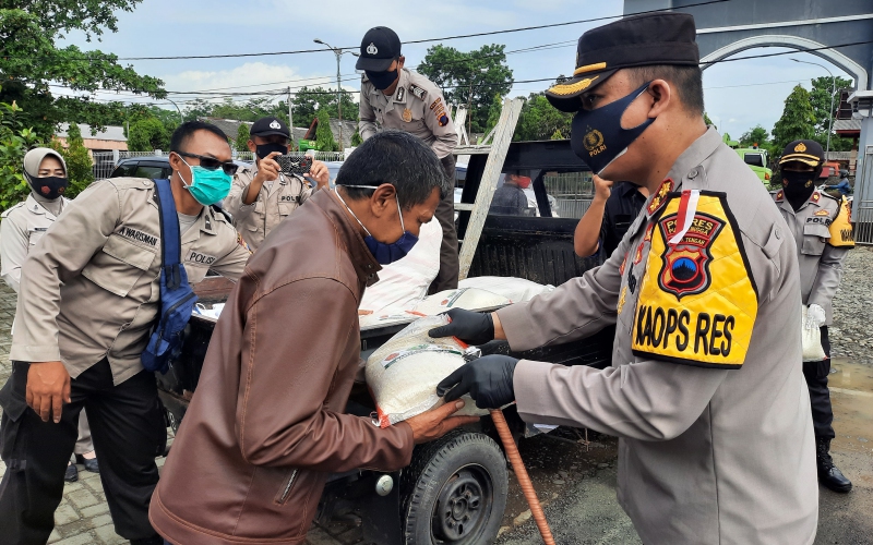 Polres Purbalingga Salurkan Bantuan Beras Bagi Warga Terdampak Covid-19