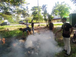 Kegiatan kerja bakti dimulai pada pukul 07 : 30 WIB hingga selesai dengan menggunakan peralatan kebersihan seperti sapu, sabit, dll. Dalam kerja bakti ini pembersihan lokasi seperti mengumpulkan sampah, membersihkan gulma , rumput liar dan pembersihan lainnya. Nantinya hasil sampah yang telah terkumpul ditempatkan di tempat sampah, lalu sampah akan diangkut petugas kebersihan dan DLH (Dinas Lingkungan Hidup).