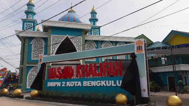 BENGKULU – Masjid Khalifah SMPN 2 Kota Bengkulu yang berada di halaman SMPN 2 Kota Bengkulu resmi dibuka, Senin pagi (5/4). Dibangun dalam kurun waktu 10 bulan dengan menghabiskan dana Rp2,3 miliar, masjid ini memiliki kapasitas daya tampung hingga 1000 orang. Bagi masyarakat umum pun boleh menggunakan masjid ini untuk beribadah karena masjid ini juga dibuka untuk umum.