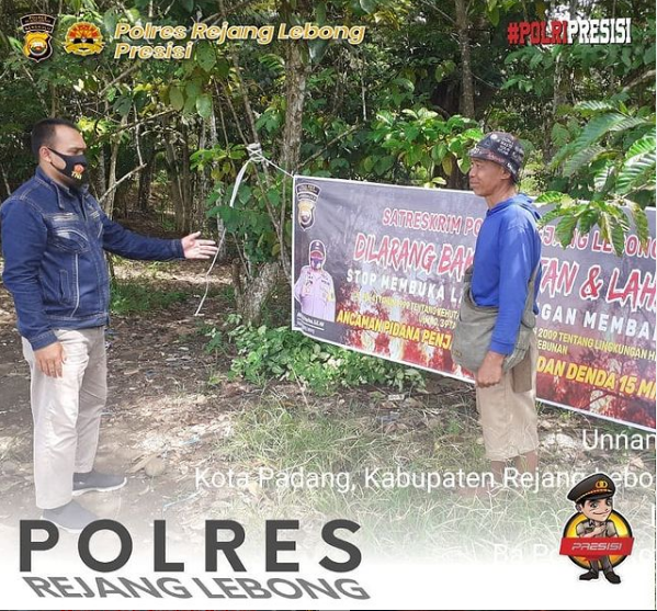 Kapolres Rejang Lebong Polda Bengkulu AKBP Puji Prayitno S.IK, melalui Kapolsek Kota Padang Iptu M Zuhdi menjelaskan kepada masyarakat ancaman bagi para pelaku yang masih ngeyel melakukan pembakaran hutan dan lahan dengan ancaman pidana. Sesuai dengan UU No 41 Tahun 1999 Pasal 108 yang berbunyi “Setiap Pelaku Usaha Perkebunan yang membuka dan/atau mengolah lahan dengan cara membakar sebagaimana dimaksud dalam Pasal 56 ayat (1) dipidana dengan pidana penjara lama 10 (sepuluh) tahun dan denda paling banyak Rp10.000.000.000,00 (sepuluh miliar rupiah),” Stop pembakaran hutan dan lahan, tegasnya.