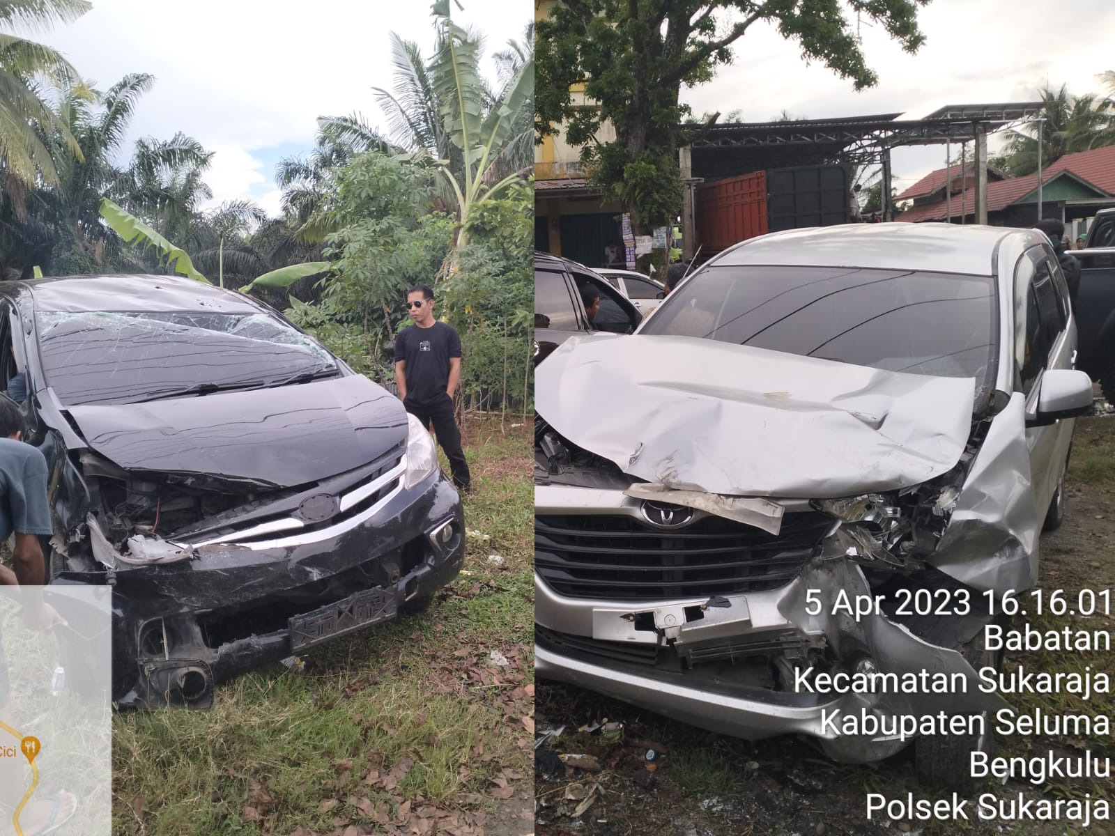 Seluma – Kecelakaan lalu lintas terjadi di ruas Jalan Raya Bengkulu-Tais, di Kelurahan Babatan Kecamatan Sukaraja Kabupaten Seluma, Rabu (5/4/2023) sore, sekira pukul 15.00 WIB. Kali ini, kecelakaan terjadi antara mobil Toyota Avanza warna hitam BD F 1893 FJ yang dikemudikan Iis Sumirat (45), PNS warga Kota Bengkulu, dengan Toyota Avanza warna silver BD 1251 EV yang kemudikan Asep (39) seorang swasta warga Seluma.