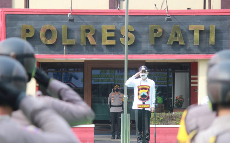 Bertempat di halaman Polres Pati, hari ini (5/5), Bupati Pati Haryanto memimpin Apel Gelar Pasukan Operasi Ketupat Candi tahun 2021.