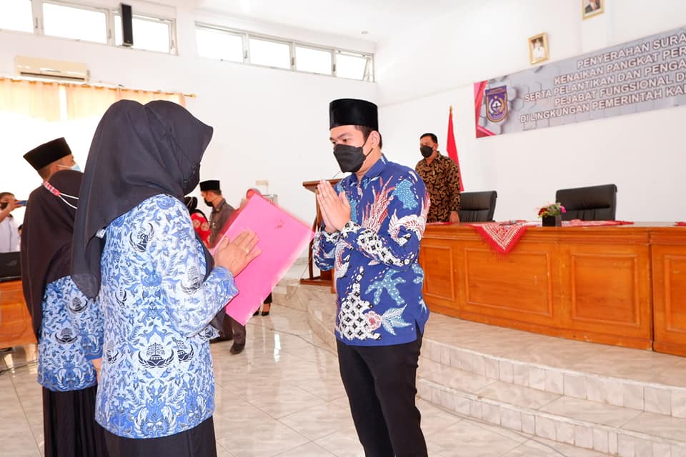 Bengkulu, Siberindo.co – Penyerahan Surat Keputusan (SK) kenaikan Pangkat Periode 01 April 2021 serta Pelantikan dan Pengambilan Sumpah Jabatan Pejabat Fungsional Dokter Ahli Utama di Lingkungan Pemerintah Kabupaten Bengkulu Utara, bertempat di Ruang Pola SetdaKab Bengkulu Uatra, Kamis, (6/5/2021).