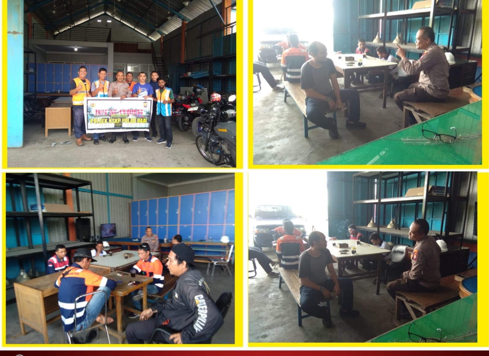 Bengkulu – Jumat Curhat kembali dilaksanakan Polsek KSKP Pulau Baai Polresta Bengkulu Polda Bengkulu. Kali ini, Jumat Curhat dilaksanakan di PT Pelindo Pulau Baai, Jumat (5/5/2023) siang, dengan dihadiri oleh karyawan Pelindo dan buruh TKBM.