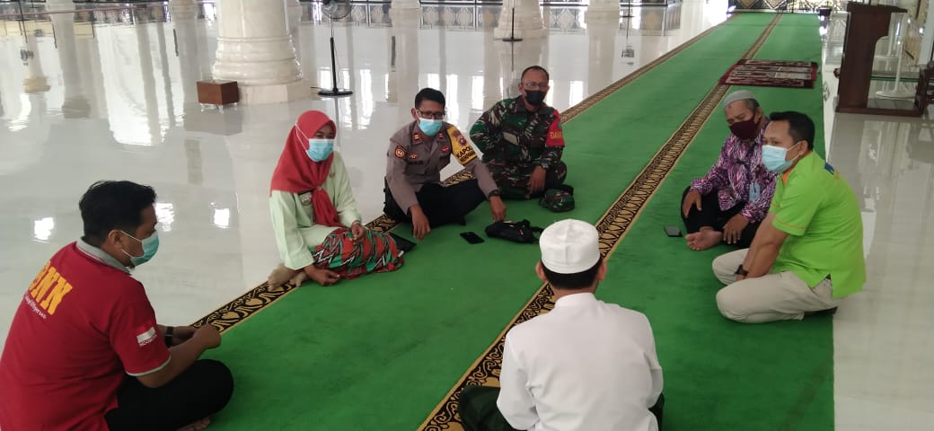 Mempawah – Danramil 1201-03/Mempawah Hilir, Peltu Apriadi bersama Muspika melaksanakan pengecekan kesiapan panitia tabligh akbar dan shalawatan serta halal bihalal di Masjid Agung Al Falah, Kecamatan Mempawah Hilir, Kabupaten Mempawah, Sabtu (5/6/2021)
