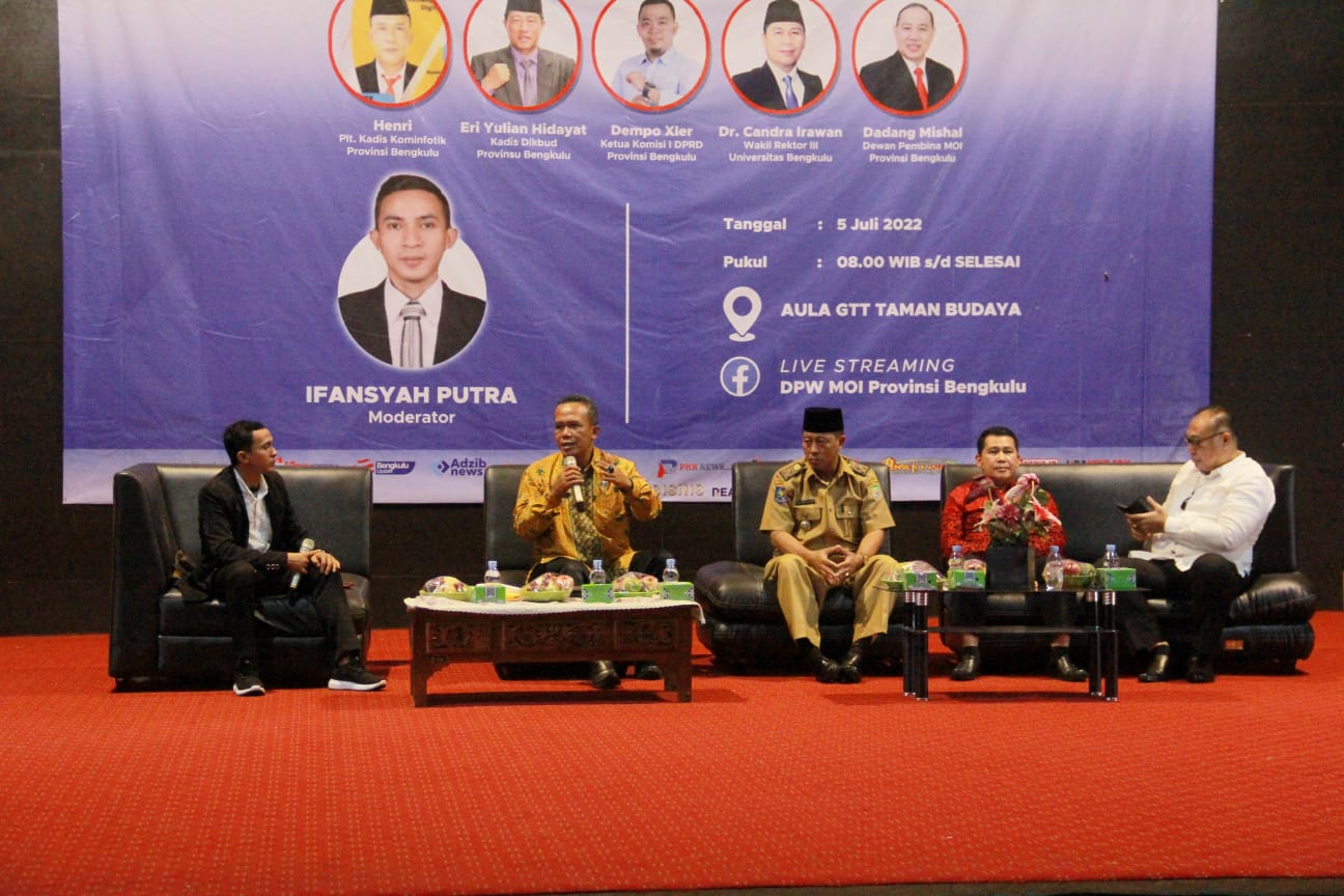 Selain itu hadir juga sebagai panelis dalam dialog ini Kadis Dikbud Provinsi Bengkulu Eri Yulian Hidayat, Wakil Rektor III Universitas Bengkulu Candra Irawan dan Dewan Pembina MOI Provinsi Bengkulu Dadang Mishal.