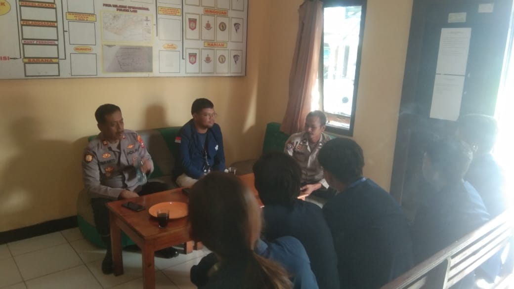 Mahasiswa KKN yang datang berkunjung ke Polsek Lais dan diterima langsung oleh Kapolsek Lais Iptu Sukamto dengan didampingi oleh Bhabinkamtibmas kecamatan Air Padang Aipda Dwi Tamtomo.