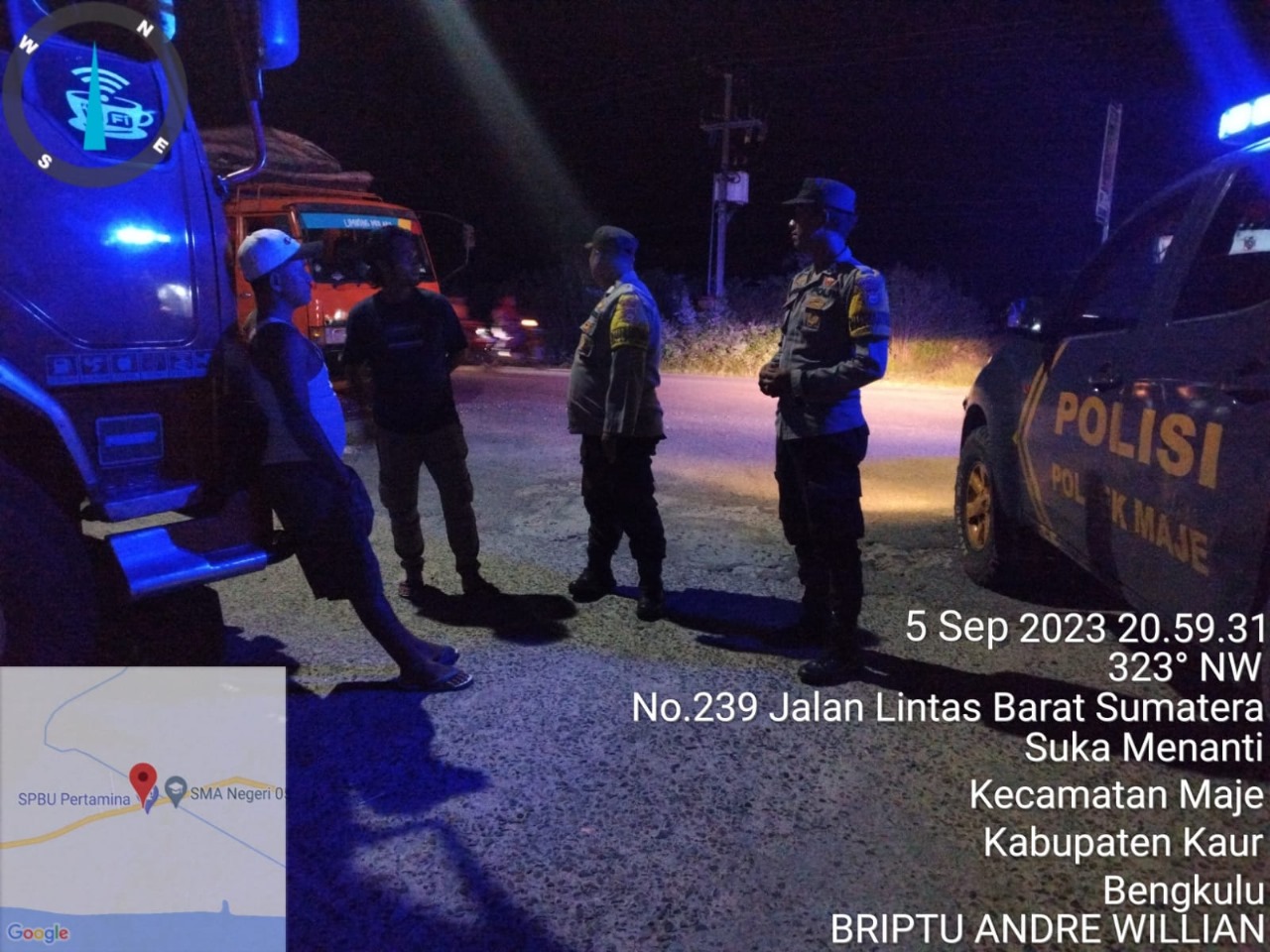 Kaur – Dalam rangka antisipasi 3C (Curat,Curas,Curanmor) dan Premanisme di Wilayah hukum (Wilkum) Polsek Maje Polres Kaur Polda Bengkulu, melakukan Giat Patroli KRYD, Selasa (05/09/2023).