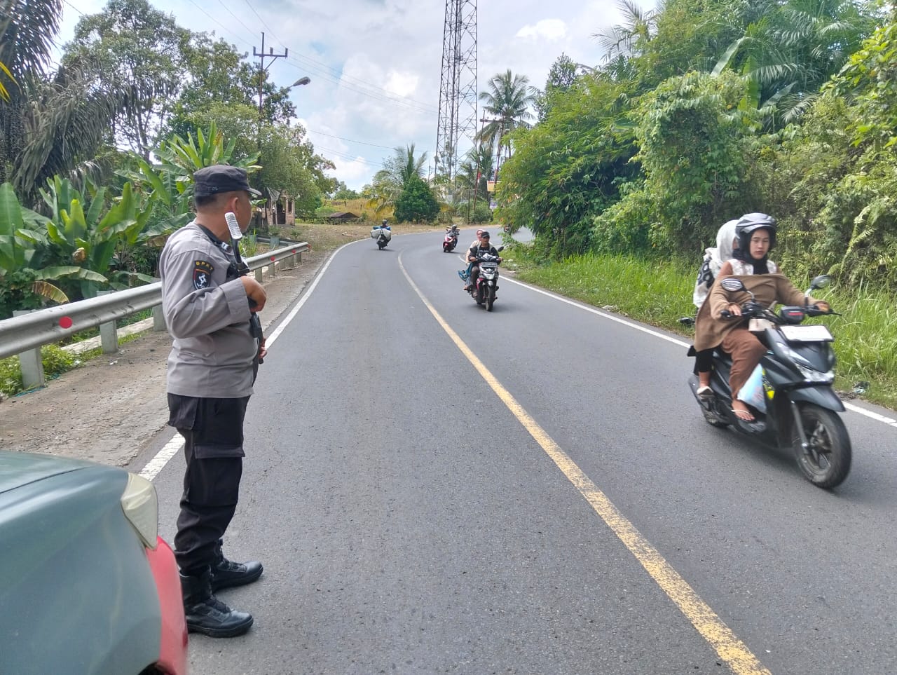 Kapolsek PU. Tanding AKP Mansyur Daud Manalu, S.H. Bersama Personil Polsek PU. Tanding Melaksanakan Kegiatan Patroli di jalan lintas PU. Tanding – Curup. Sabtu (06/09/2025).