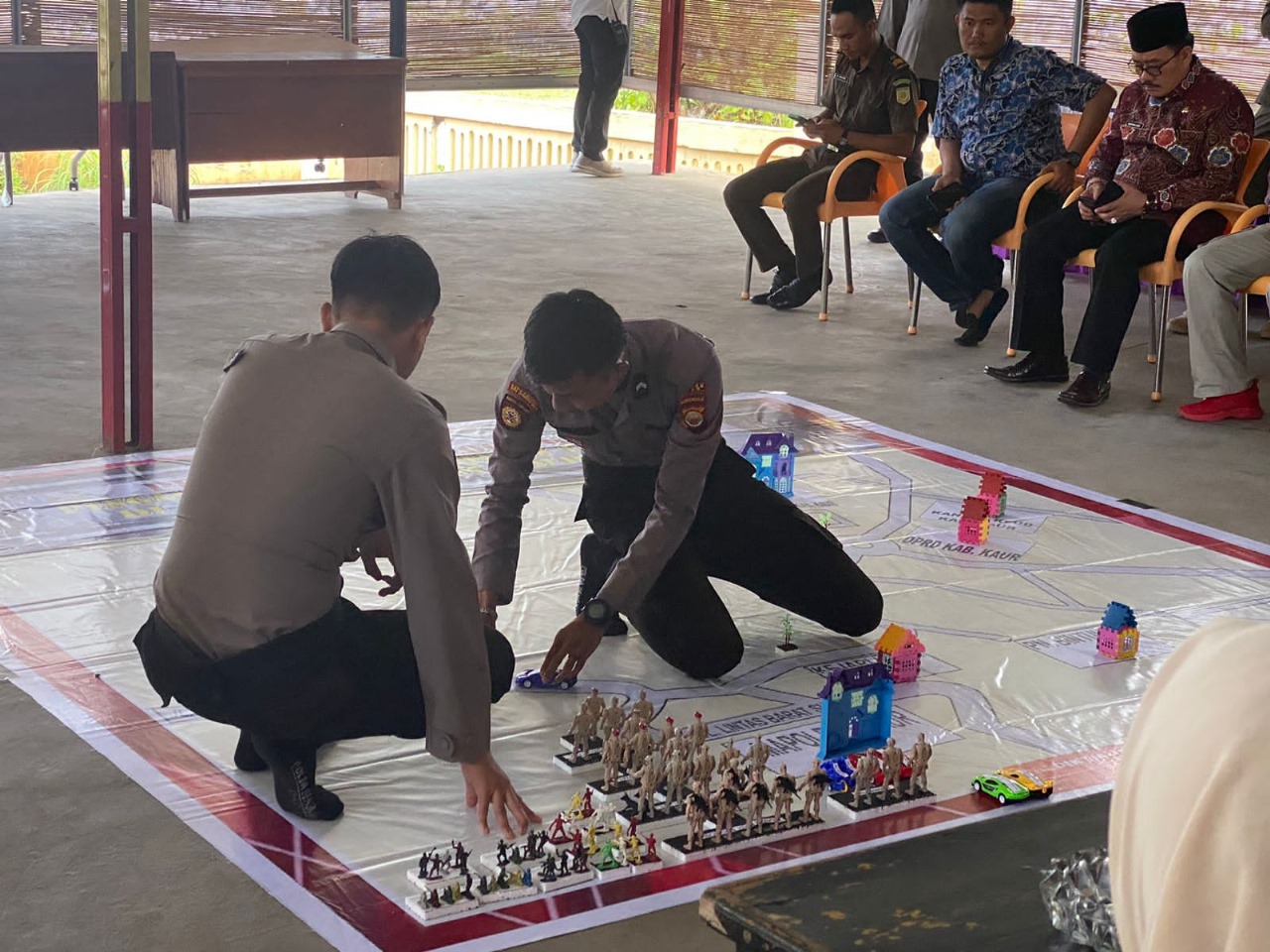Kaur – Dalam rangka menghadapi pemilihan umum (Pemilu) serentak 2024, Polres Kaur Polda Bengkulu, melaksanakan simulasi Tactical Floor Game (TFG) di Rumdin Kapolres Kaur, Kamis (05/10/2023).